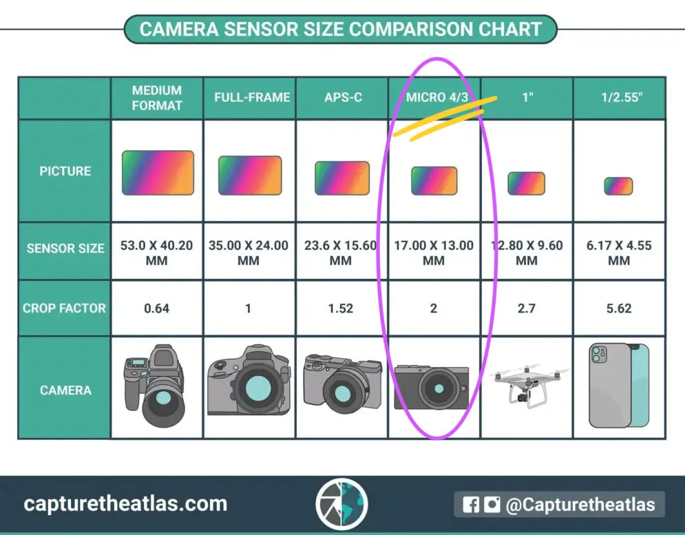 This camera was a Micro Four Thirds (MFT) camera. MFT is a standard made by Olympus and Panasonic. You can use Panasonic lenses with Olympus cameras and vice versa. It also means that they have a standard sensor size, smaller than APS-C (used by intermediate-level cameras) and full-frame (the standard in “pro” photography).